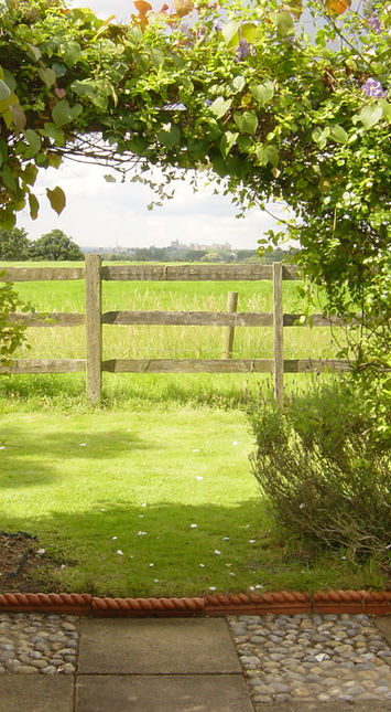 Hidden away from the other gardens and properties is this secluded space, meant for those who desire a real retreat into nature. The custom built Shepherd's Hut and wrap around decking is large and luxurious, built with all the home comforts you need. Spend the day lazing with a good book or spotting the wide variety of wildlife that lives here. As you stroll along windy paths through long grass in the four acre meadow opposite, you'll happen upon a jaw dropping view of Windsor Castle taking up what seems like the whole horizon. Fire up the barbecue in the golden light of late afternoon, or enjoy a relaxing soak in the heated outdoor bath as the sun sets for another day. If you stay quiet around dusk, our beautiful white barn owl may grace you with her presence as she hunts over the meadow below.