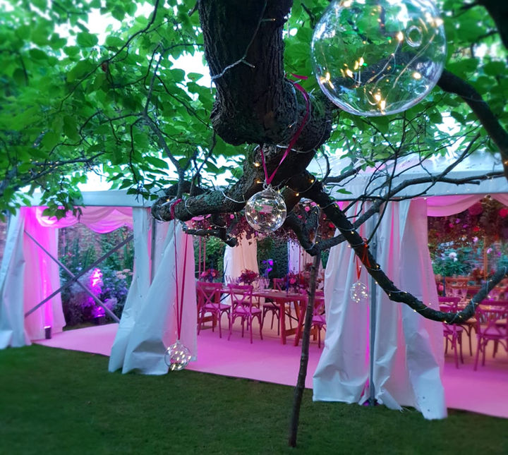 Our very own fairy-tale woodland, situated in the heart of Little Dower House, this quaint location basks in untamed natural beauty. With sunlight shining through the trees, flowers covering the floor and wildlife enjoying the stream that flows through to the romantic gothic bridge. This location is beautiful during the day, but really comes alive at night ~ with flickering lights and the moon and stars reflecting in the water, it really is a midsummer night's dream.